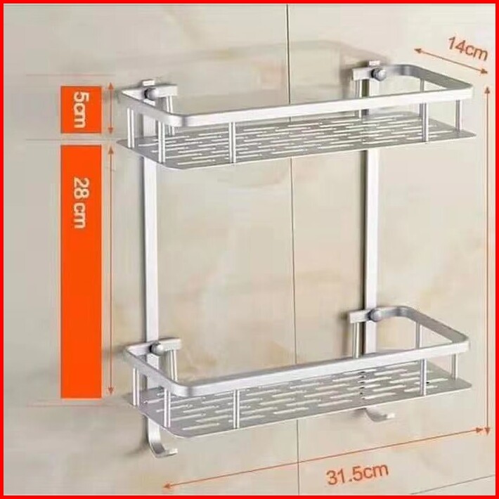 600gr Shenar Rak Dinding Aluminium 2susun Rak Kamar Mandi Double Layer Rak Toilet Rak Aluminium Rak Anti Karat