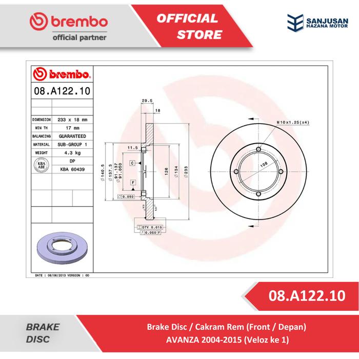 BRAKE DISC FRONT / PIRINGAN REM DEPAN BREMBO TOYOTA AVANZA / XENIA 2004 - 2015 - 08.A122.10