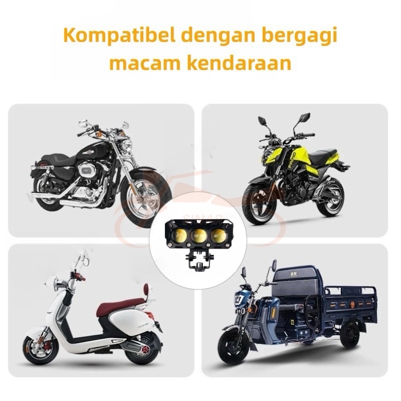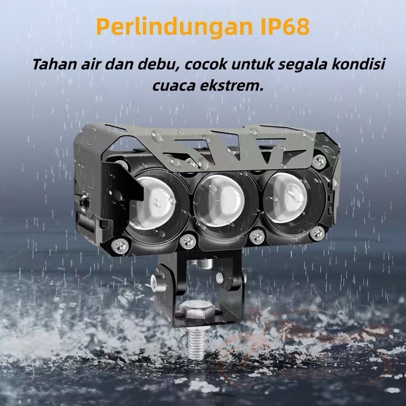 Sinar Racing Lampu Motor LED Super Terang 3 Mata 160W Waterproof IP68 Putih Kuning 100.000 Jam