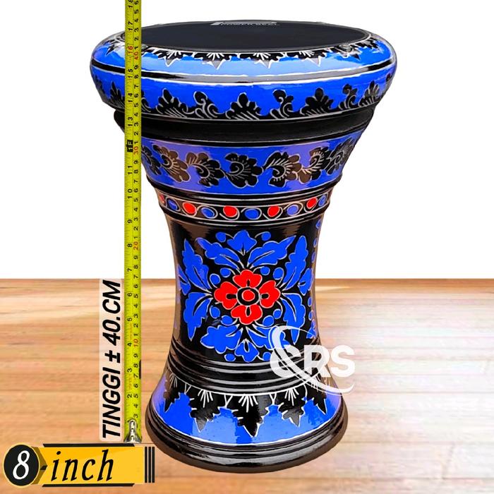 DUMBUK KAYU 8 INCH HITAM BIRU ALAT MUSIK MARAWIS - M.HITAM DUMBUK DAJA