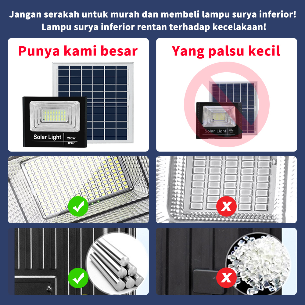 Damov Solar Light Lampu Panel Surya tenaga 300Watts Led Outdoor Flood Light Cell 40W 60W100W 200W