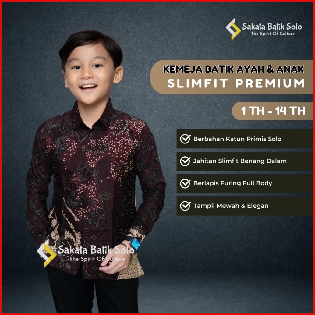 Sulendra Burgundy Kemeja Batik Couple Ayah Anak Motif Bahan Katun Halus Lapis Furing Full Body