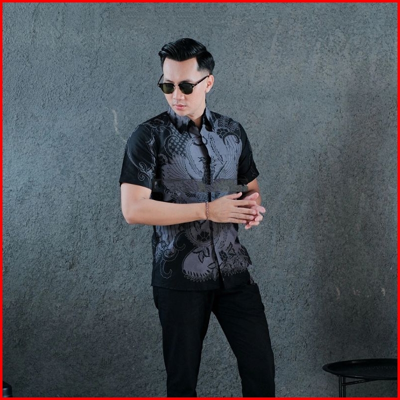 Widuran Abu Pendek Kemeja Batik Pria Slimfit Lengan Panjang Bahan Katun Halus Lapis Furing