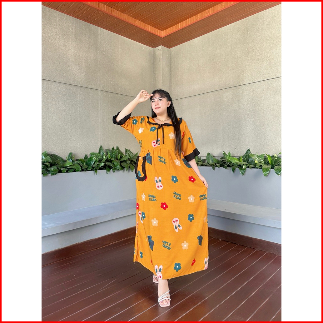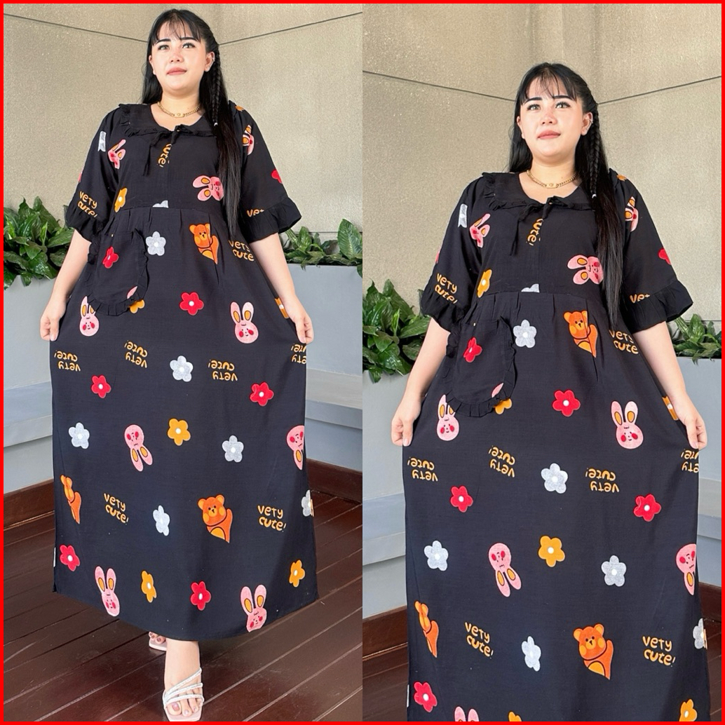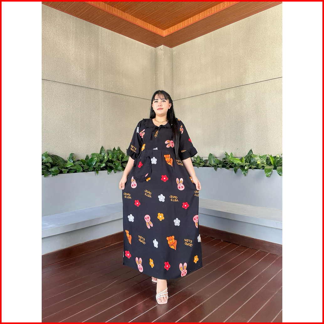 Midi Dress Amanda Motif Karakter Viral Terbaru Bahan Rayon Premium Tebal Adem Nyaman Dipakai Ld 120 Bumil Busui Aktif