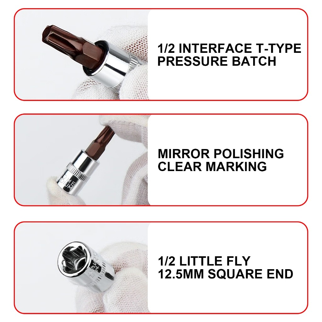 JLD 9Pcs Mata Kunci Shock Bintang Torx /Hex Impact Socket Bit Complete Set With Hardcase 1/2 Drive Buat Buka Honda Yamah