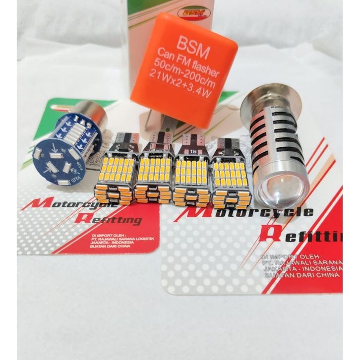 PROMO paket lampu motor PROMO PAKET LAMPU 4 ITEM LAMPU SEN DAJJAL + LAMPU STOP 30 MATA + LAMPU DEPAN LASER H6 AC DC LAS