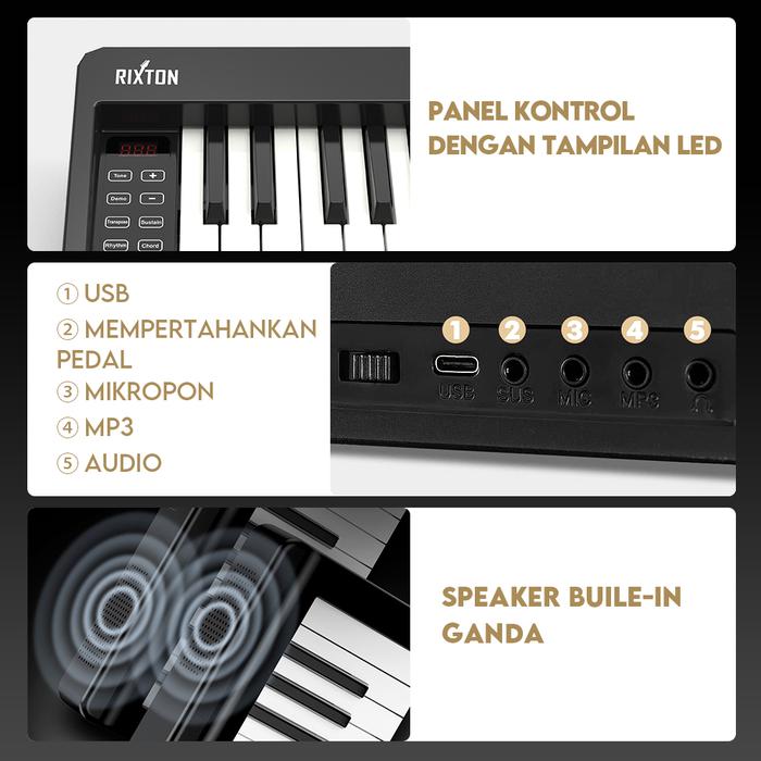 RIXTON KEYBOARD LIPAT 61 TUTS PIANO LIPAT KEYBOARD UKURAN PENUH TUTS SEMI TERTIMBANG SET LENGKAP - HITAM