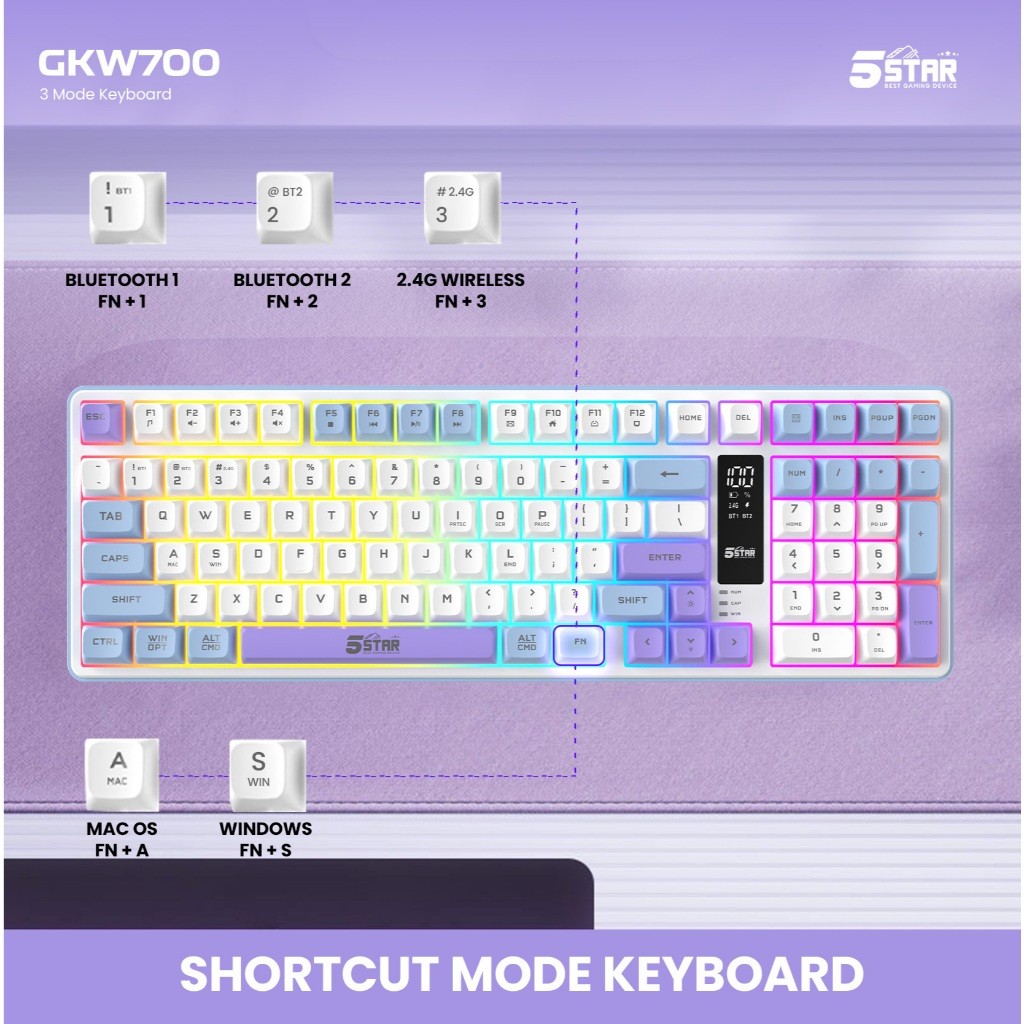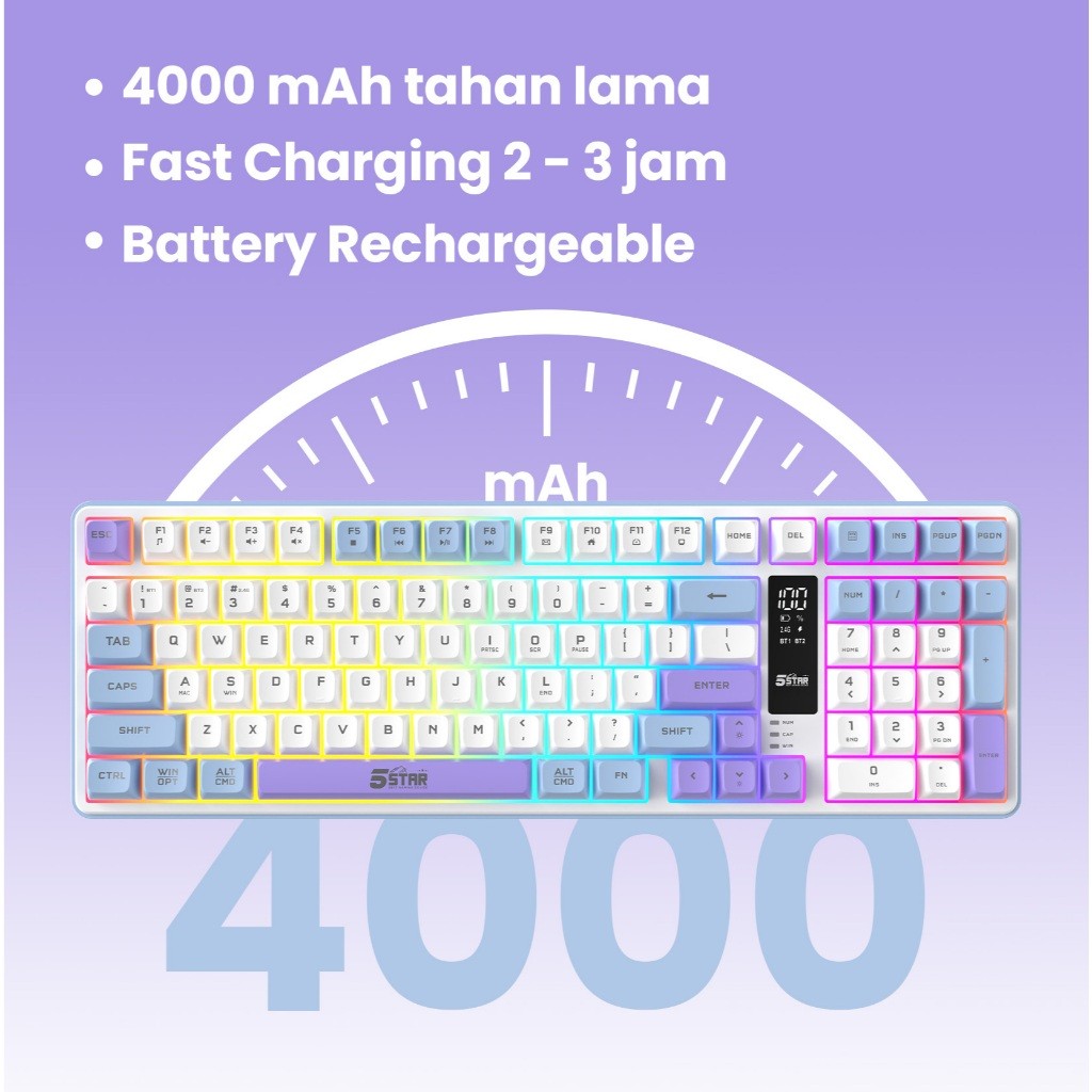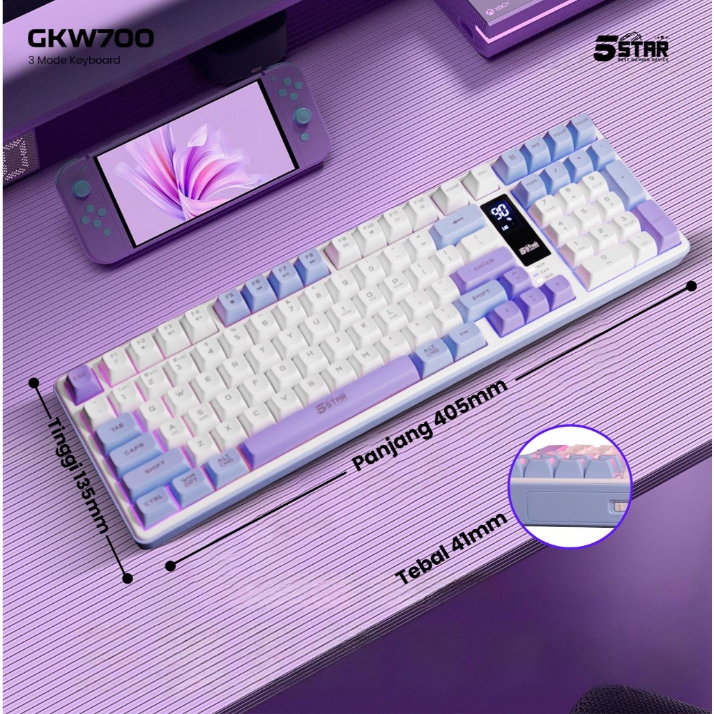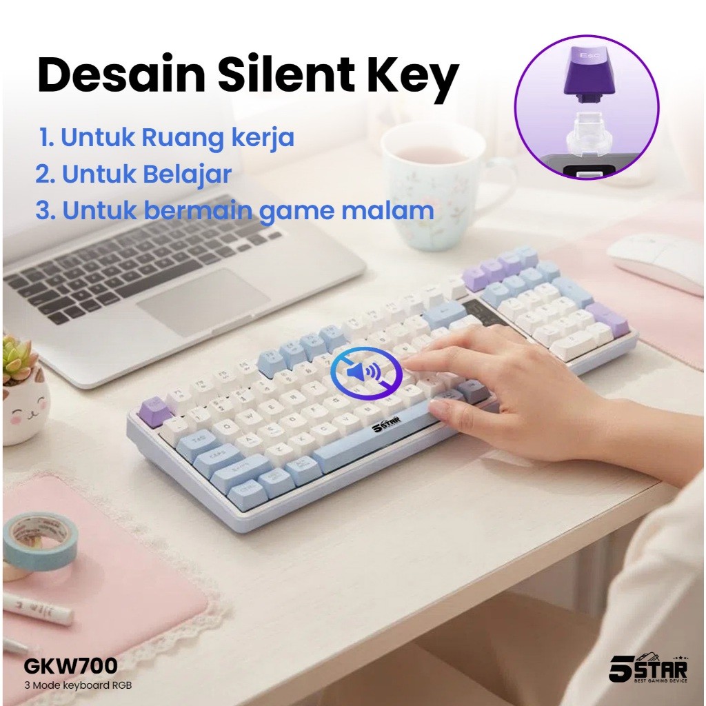 5Star Keyboard Gaming Wireless Silent klik Untuk gaming malam Bluetooth Tabel PC Laptop HP GKW700