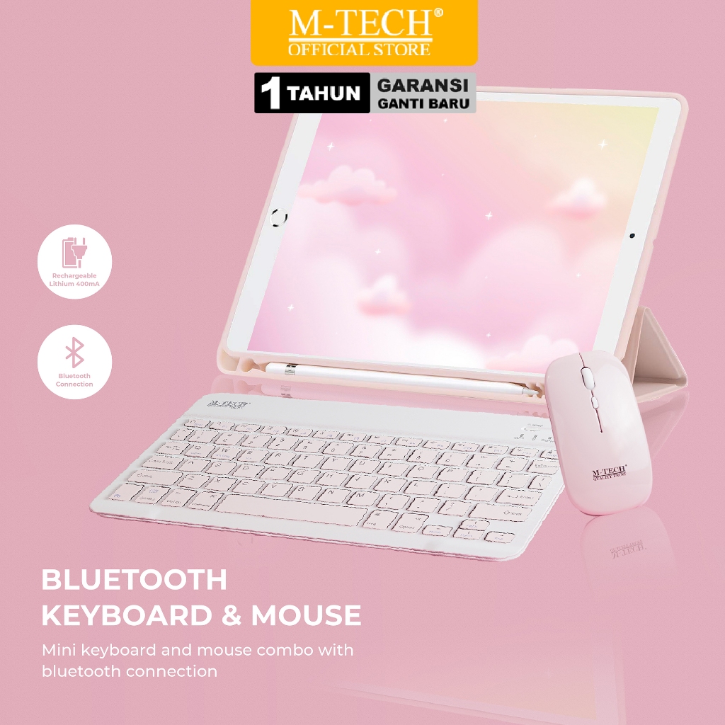 MTECH Keyboard Mouse Combo Bluetooth Rechargeable STK-07 Untuk Tablet Android / Ipad / PC