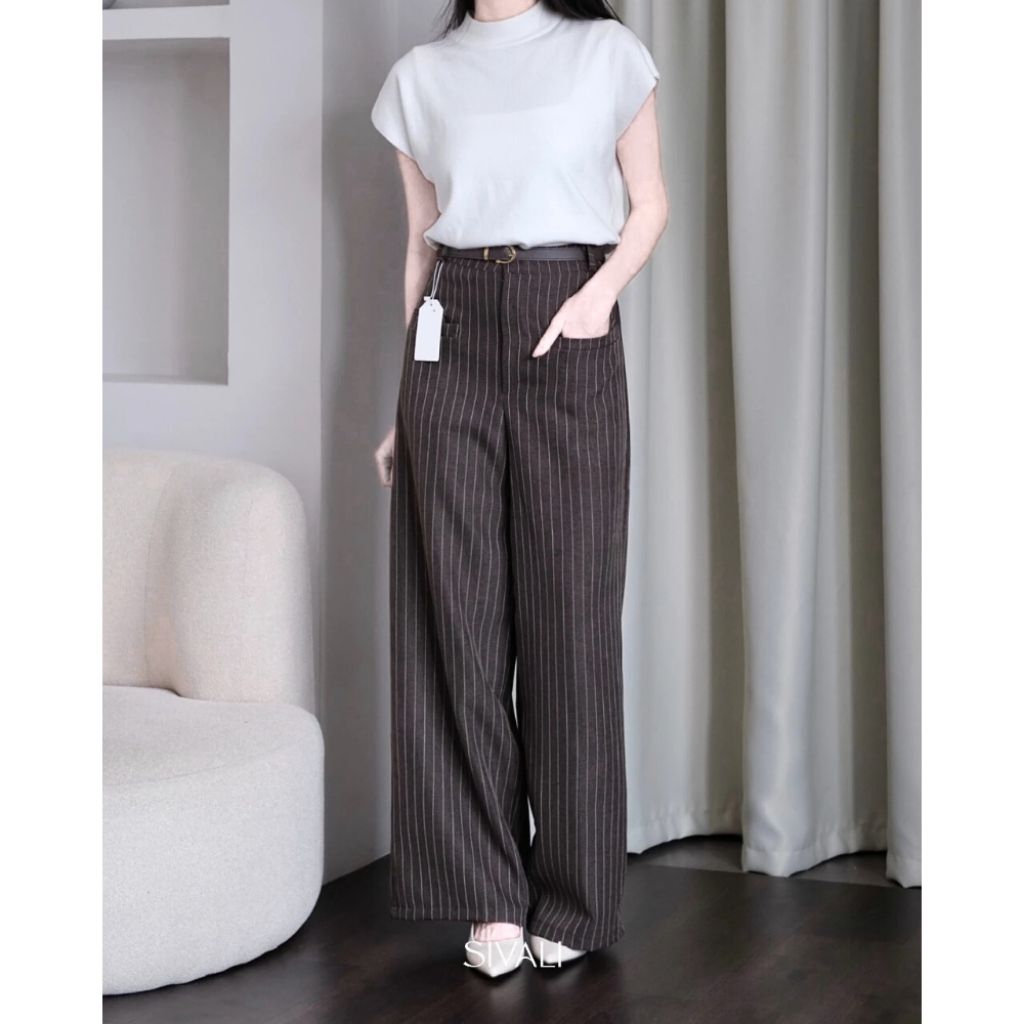 Elora Pants - Loose Pants Stripe Trouser Wanita - Celana Garis Kulot Casual Formal Murah Gratis Ongkir