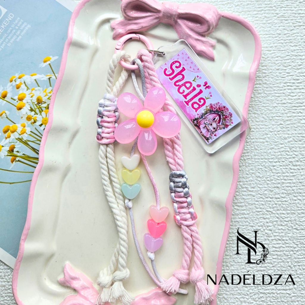 Nadeldza Bag Charm Lucu Gantungan Tas Tali Daisy Bunga Inisial Nama Custom Huruf Korean Aesthetic/ Gantungan Tas Aesthetic Alphabet Lucu