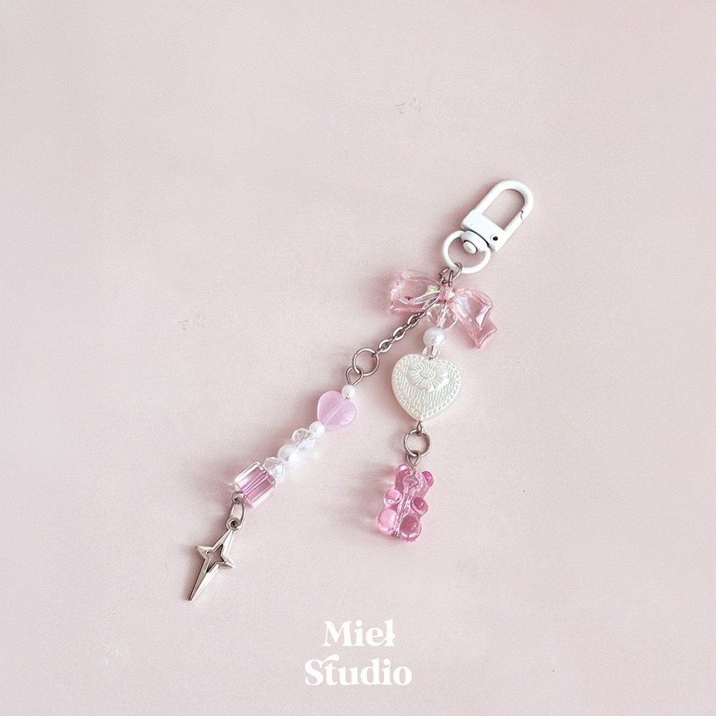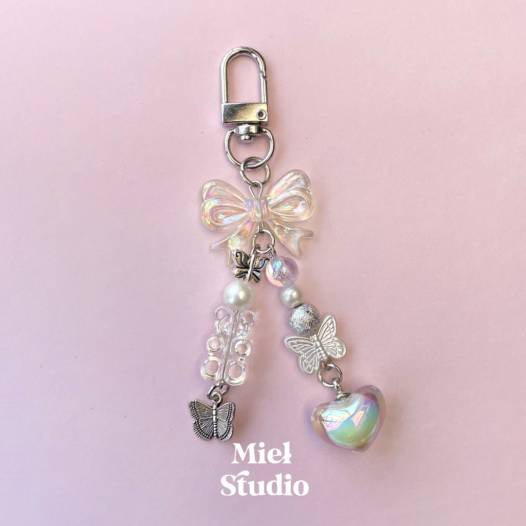 MIEL STUDIO Premium Bag Charm Keychain Ribbon Coquette Heart Butterfly Charm Gantungan Tas Lucu