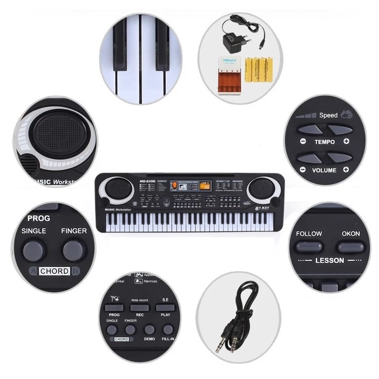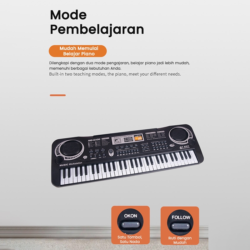 Benston Music- Mainan Anak Piano Elektronik 61 Keys / Keyboard Electronic 61 Keys Lengkap Mic Dan Charger