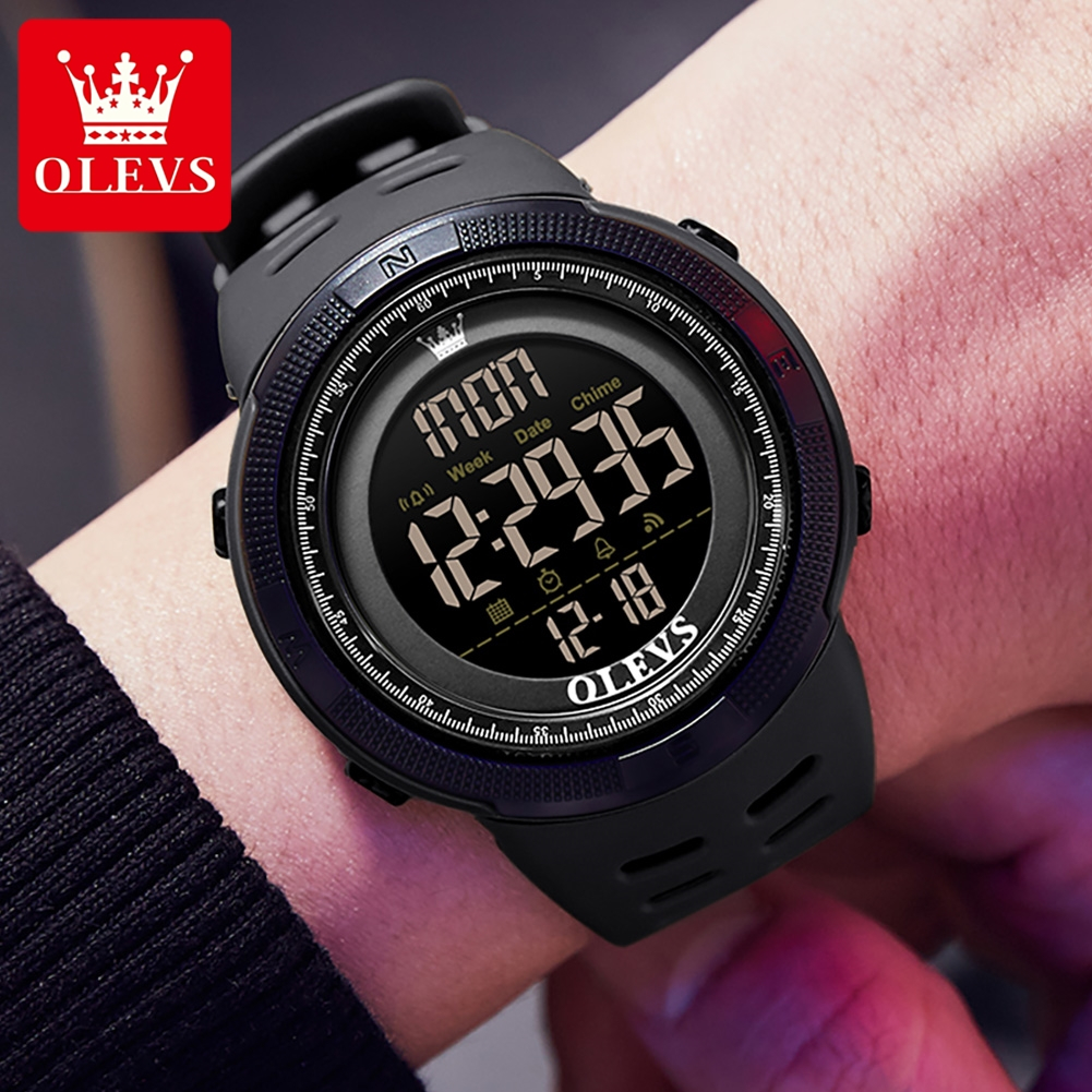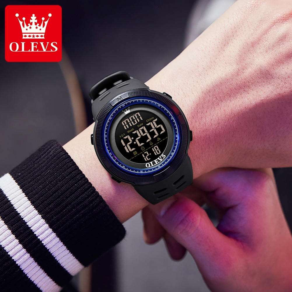 Olevs Jam Tangan Pria Anti Air Original Led Digital Tampilan Ganda Analog Multi Fungsi Jam Alarm Pengatur Waktu Men Watc