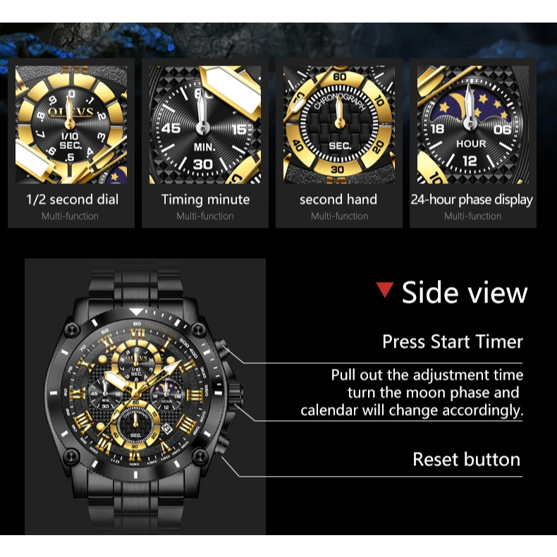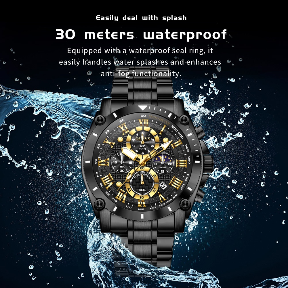 Olevs Jam Tangan Pria Anti Air Original Stainless Steel Keren Terbaru Luminous Kalender Luxury Men Watch