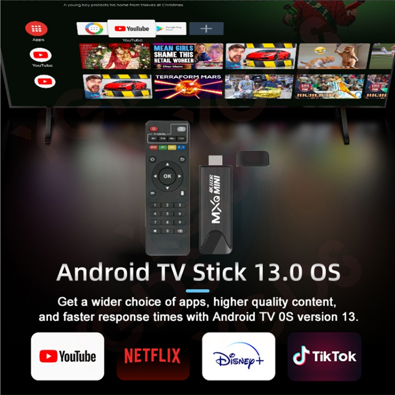 YGDS MXQ Mini Smart TV Stick 4K 5G WiFi 16+256 Android 13.0 Netflix/Youtube TV Stick Mini Android Tv Box Local tv digita