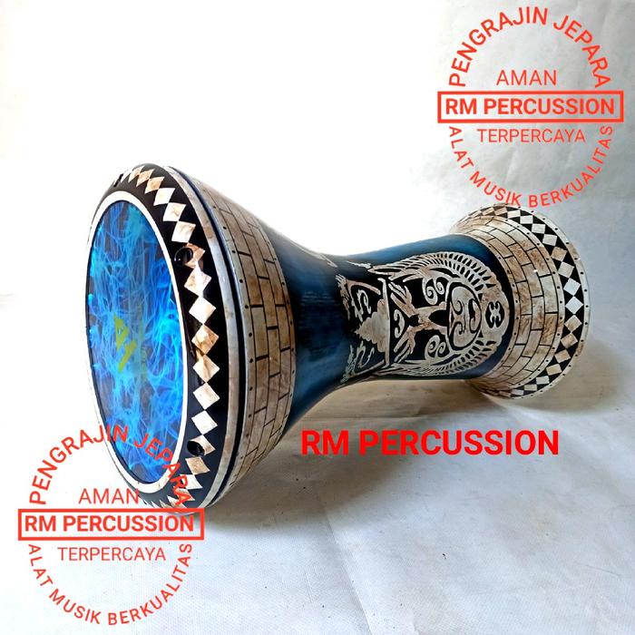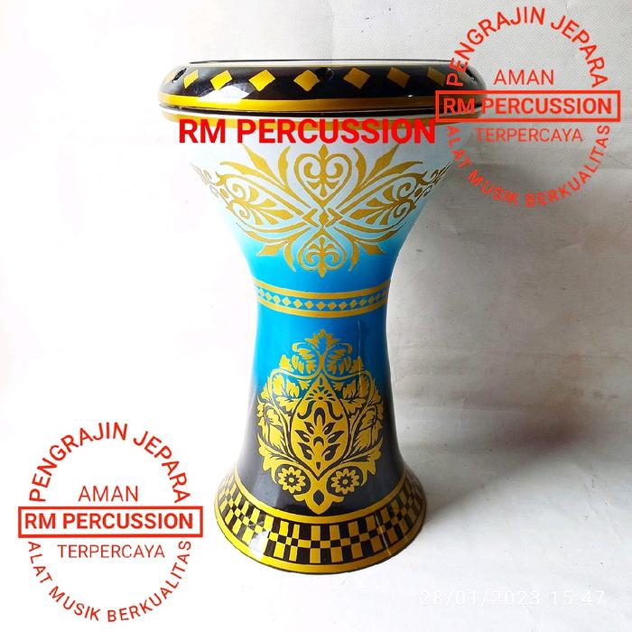 DARBUKA 8 INCH FULL SET LENGKAP DENGAN TAS BUSA DAN KUNCI L - BIRU MIKA RM