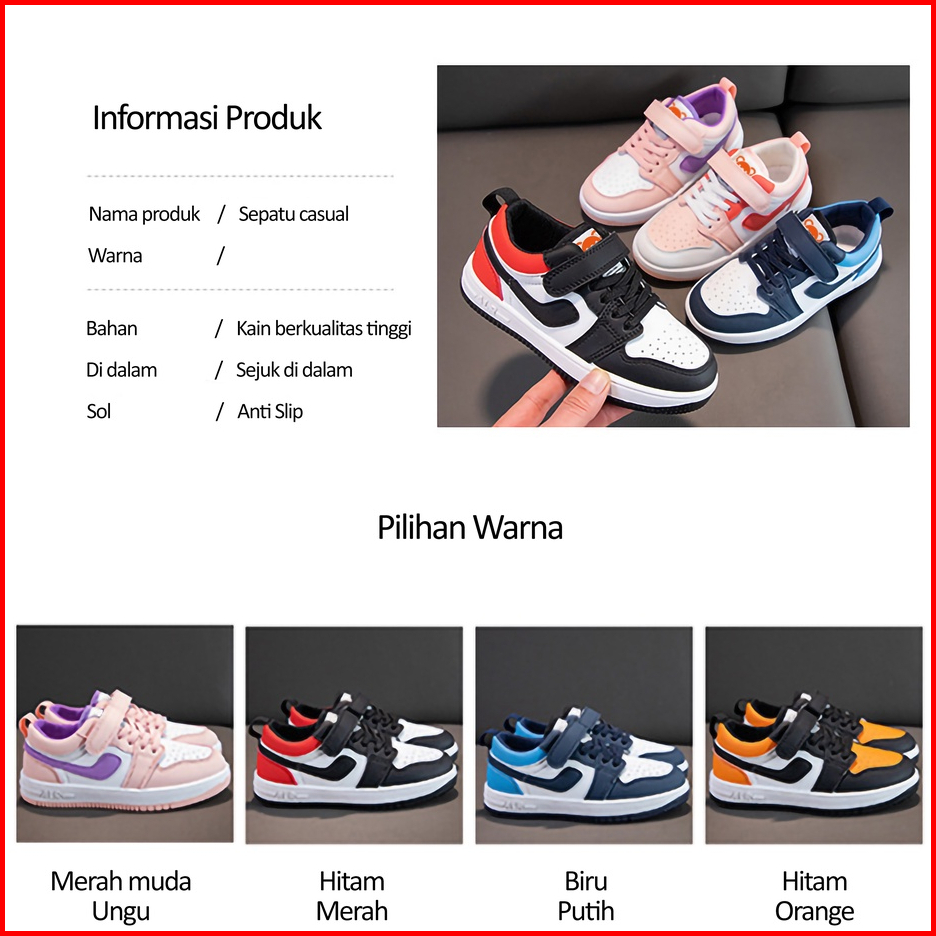 Mosbo Sepatu Anak Perempuan Sepatu Sneaker Sekolah Sepatu Anak Laki Laki Fashion Import Size 26-37