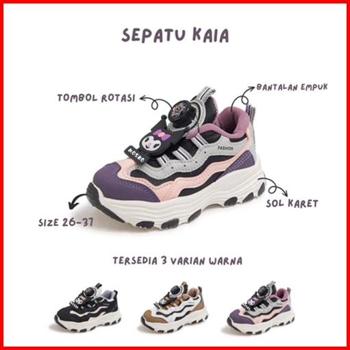 Mosbo Sepatu Sneakers Anak - Kuromi Sports Casual Fashion Sepatu Sneakers Anak Remaja Tali Rotasi Import Murah Sepatu An