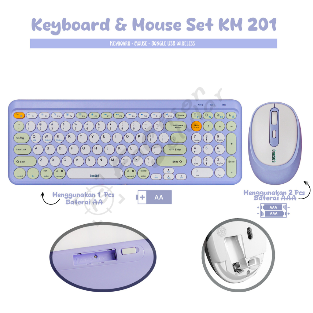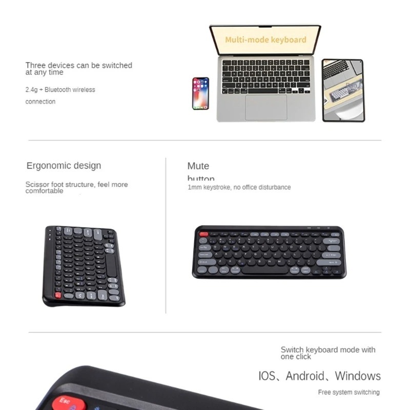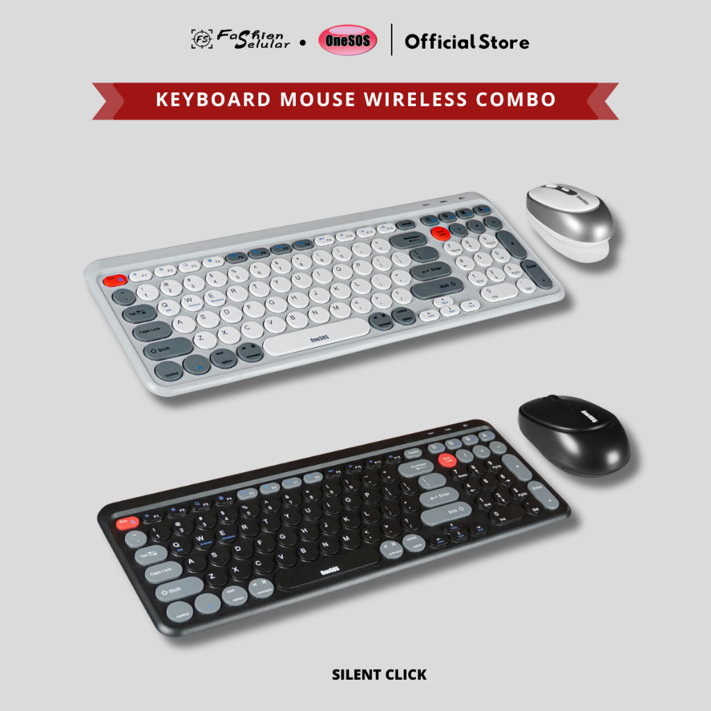 OneSOS Keyboard Mouse Wireless Bluetooth 2.4Ghz Ergonomic Flat Layout For PC Laptop Tablet Handphone