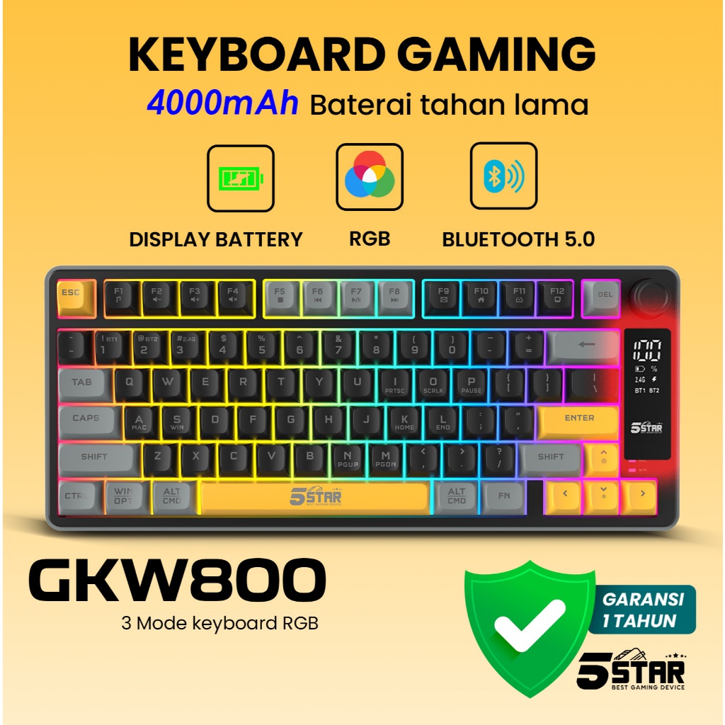 5Star Keyboard Wireless Gaming 77 Keys RGB Bluetooth Untuk PC LaptopTablet HP (Android/iOS) GKW800