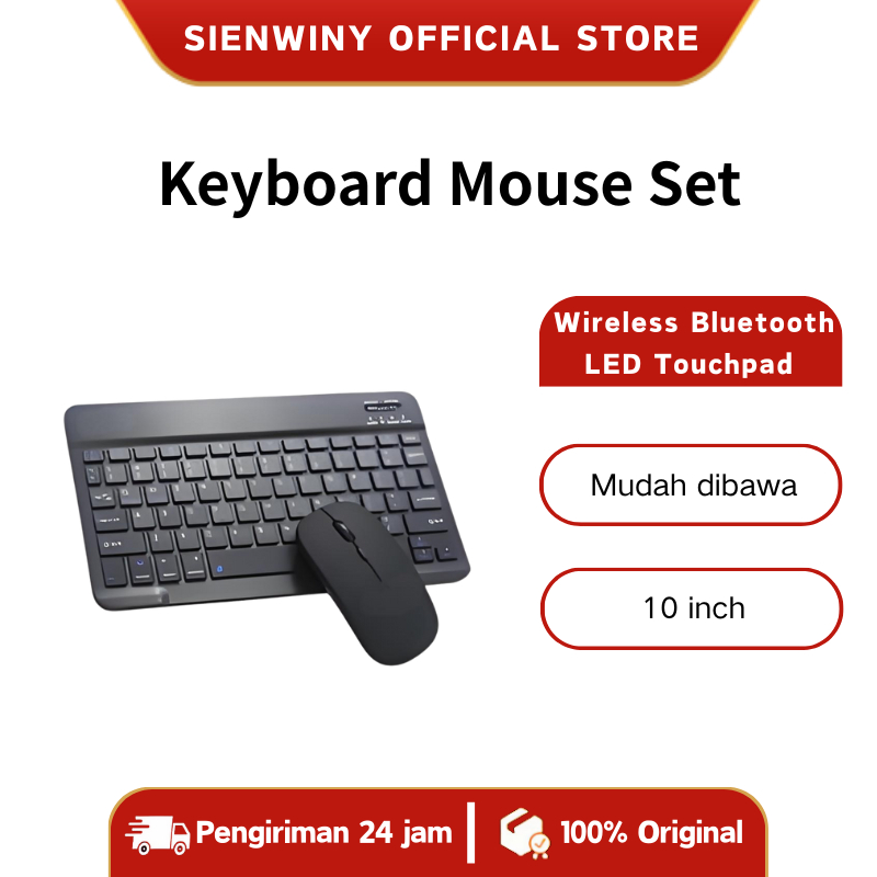 【SIENWINY】Keyboard Mouse Set Wireless Bluetooth LED Touchpad 10 inch For Laptop PC Tablet Mobile Phone
