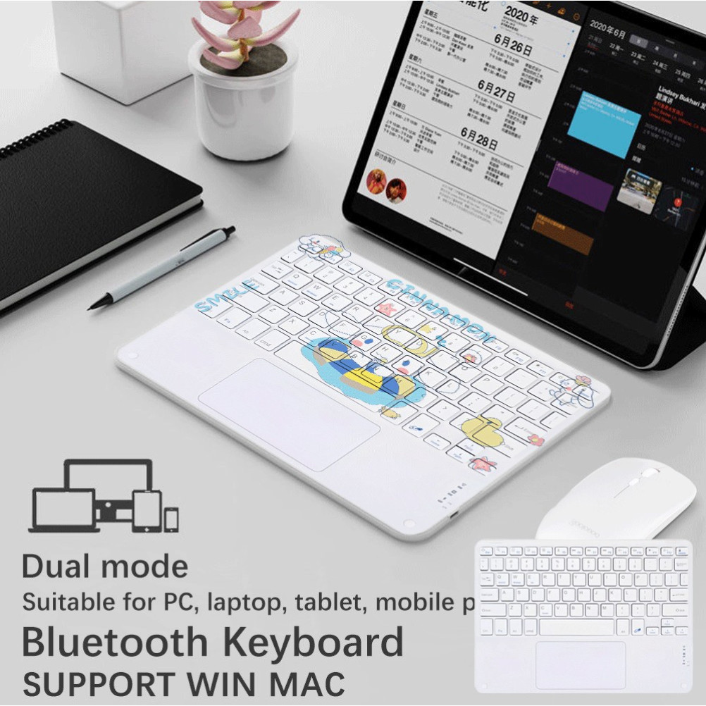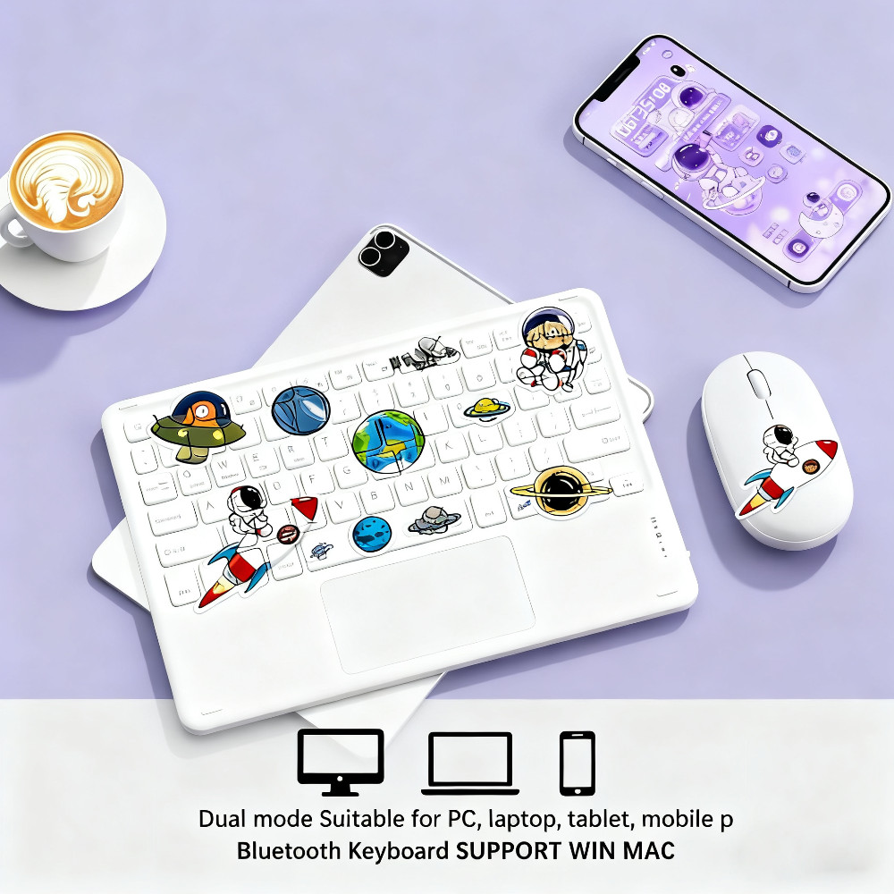 Wireless Bluetooth Keyboard with TouchPad: Space Theme + Cute Astronaut & Planet Design, Portable for iPad/Samsung Tab/H
