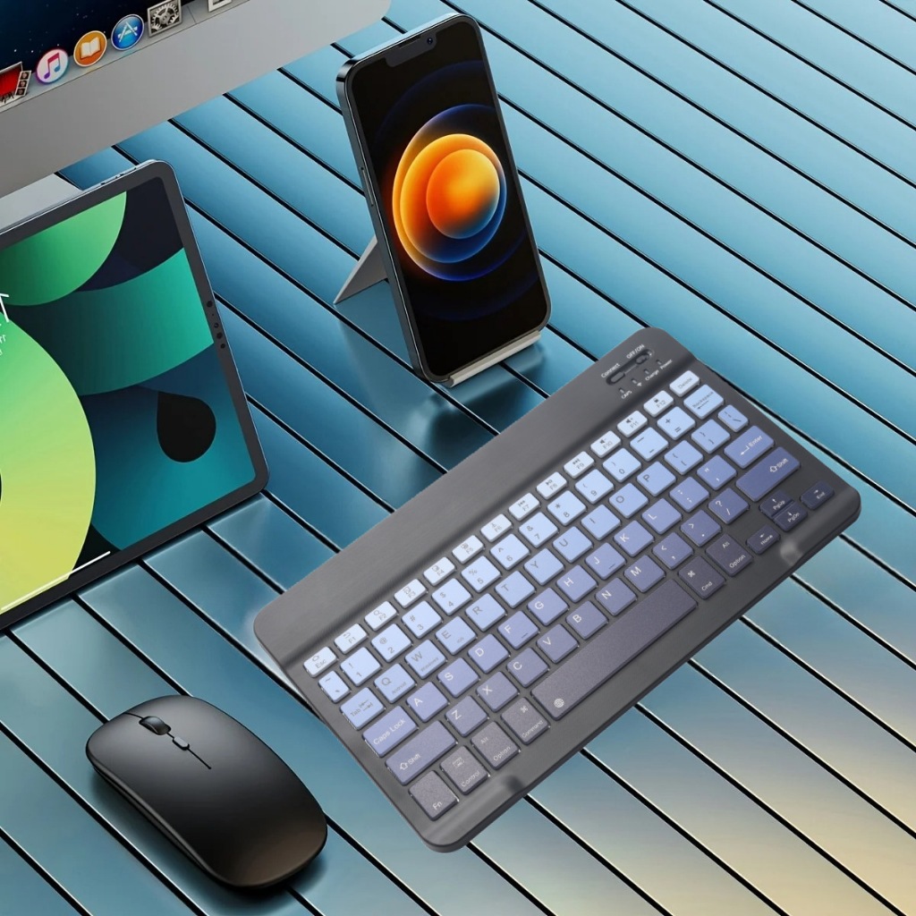 Wireless Keyboard 10 Inch Gradient Color Bluetooth Keyboard Portable for iPad Android Tablet