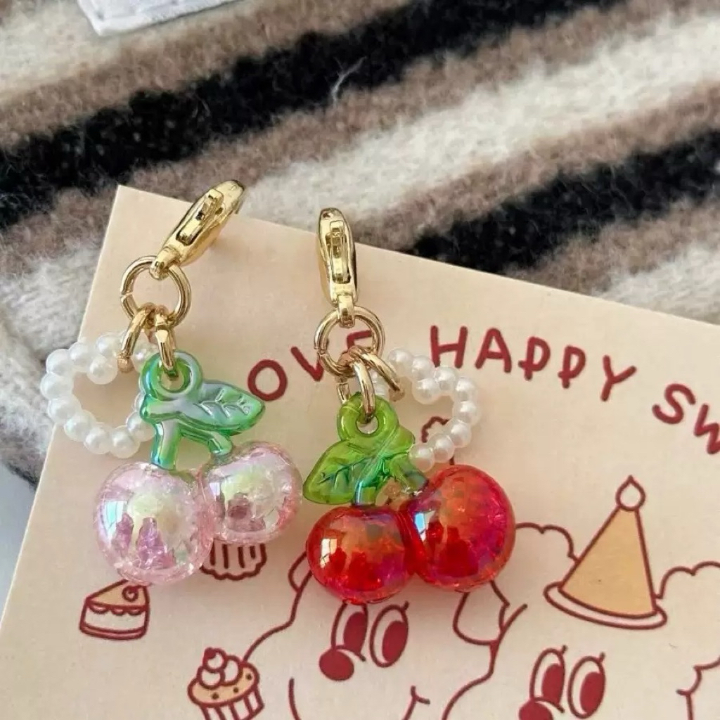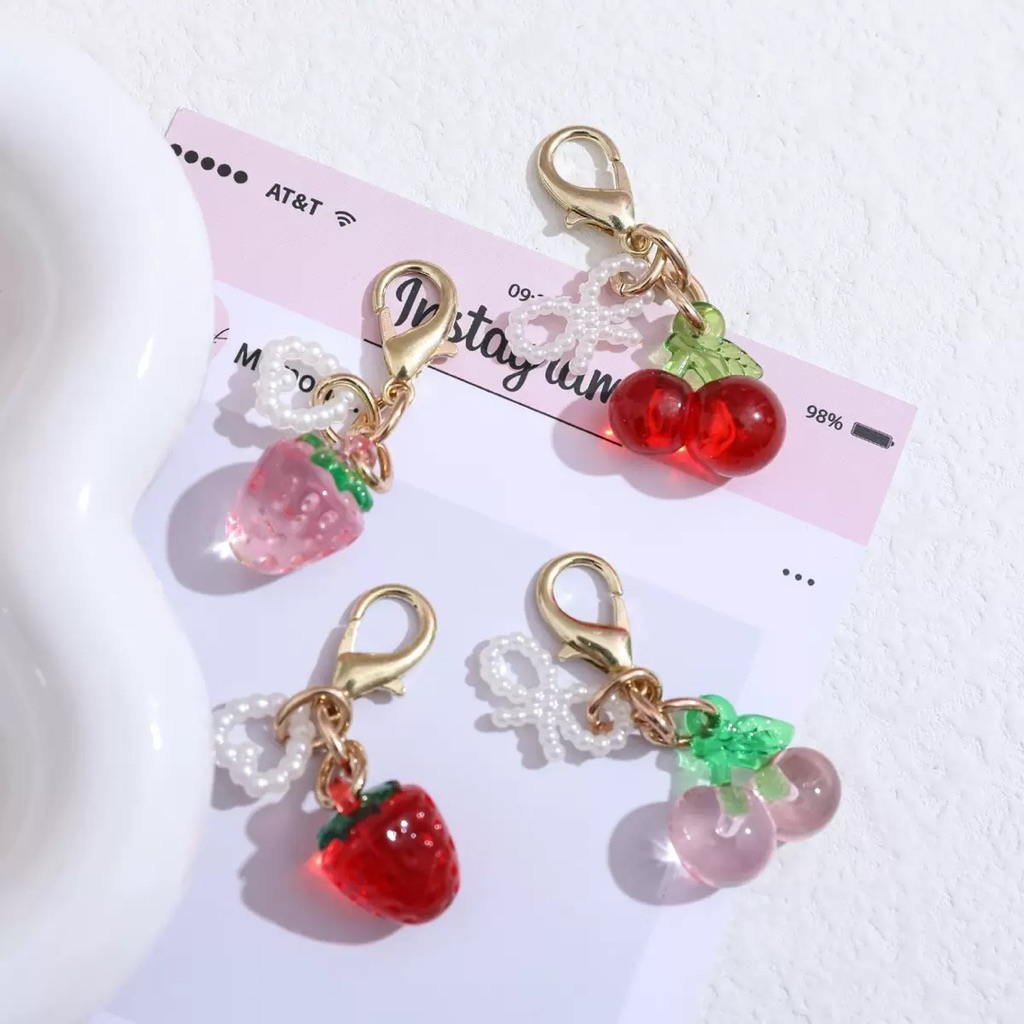 Bag Charm Mini Gantungan Tas Buah Cherry Strawberry Simple Lucu Hiasan Dompet Hape Phone Charm Lanyard