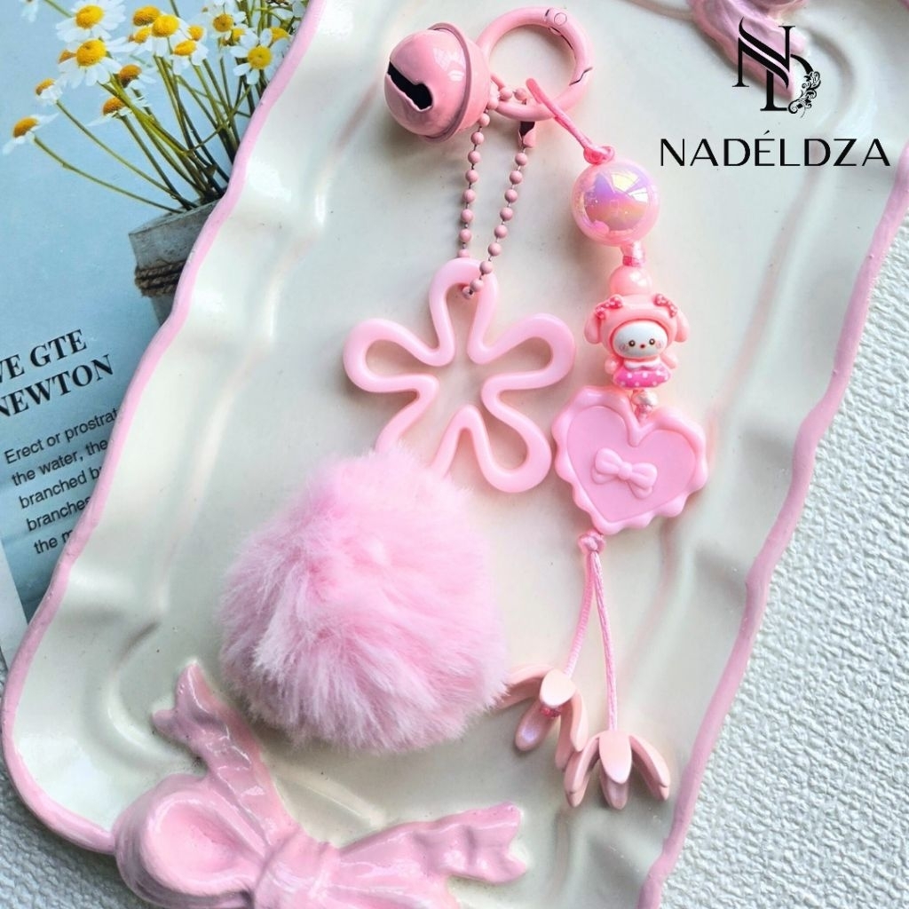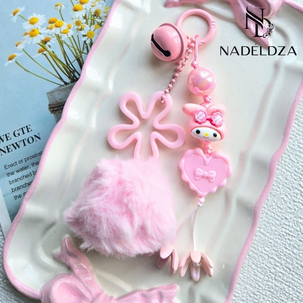 Nadeldza Bag Charm Tali Pompom Karakter Melody Sanrio Bunyi Lonceng/ Gantungan Tas Karaker Melody Lucu