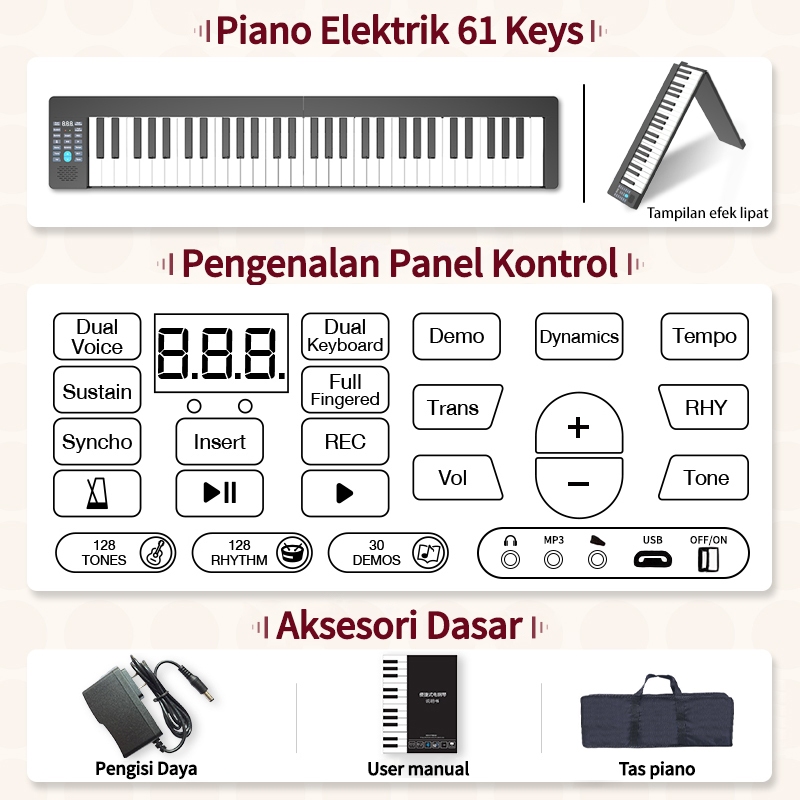 Benston Music- 61-tuts piano lipat, piano elektrik pintar 61-tuts bluetooth keyboard portabel keyboard piano kecil - dap