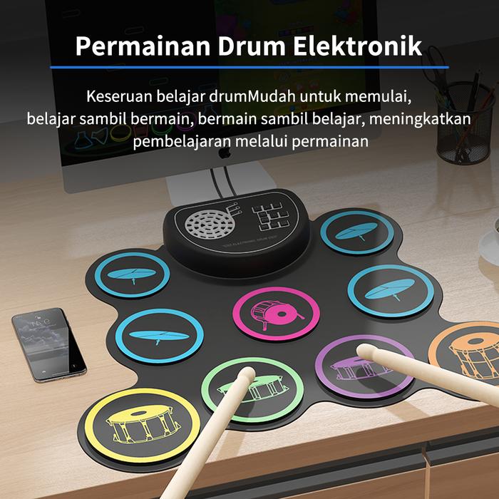 SIBORIE KD12 ELECTRONIC DRUM KIT 9 PADS DRUM GULUNG ANAK-ANAK SET LIPAT DRUM ELEKTRIK SILIKON HAND ROLL DRUM KIT DRUM JA