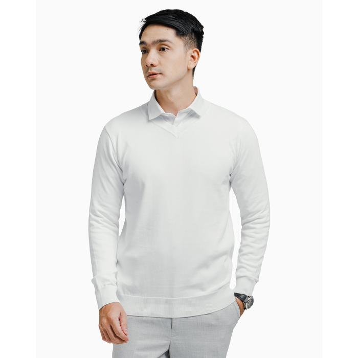 Gomuda Sweater Rajut Pria V-Neck Kerah V Lengan Panjang - Black, M