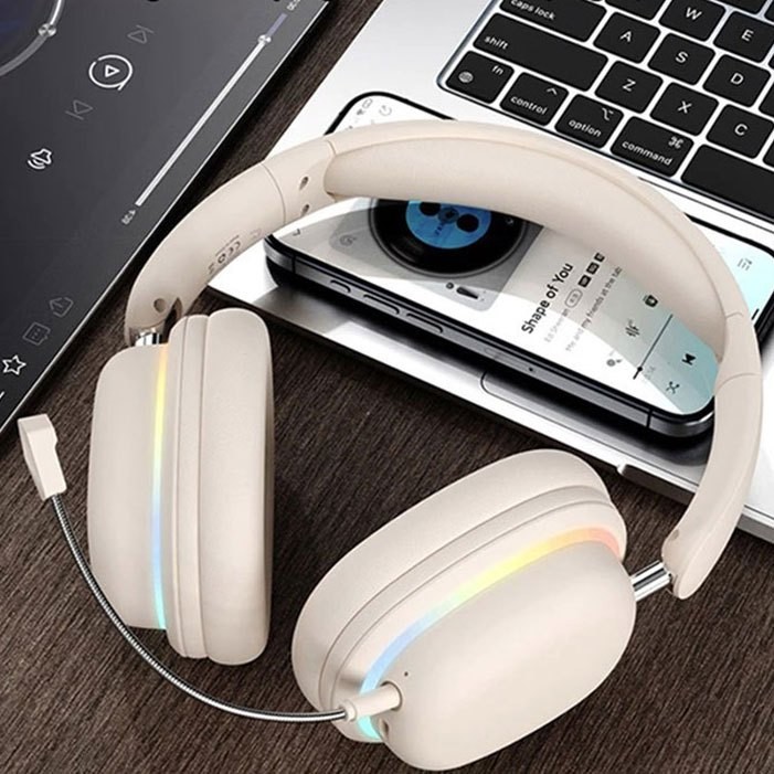 Headset Bluetooth Dengan Mikrofon & Efek Lampu RGB Suara Stereo Nirkabel Baterai Tahan Lama Nyaman Dipakai Cocok untuk G