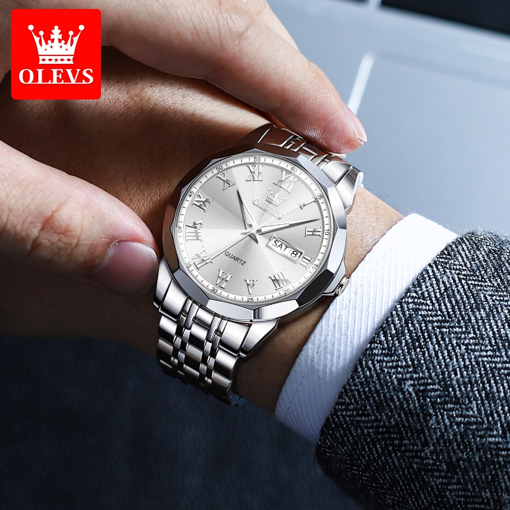 Olevs Jam Tangan Pria Anti Air Original Analog Stainless Steel Keren Casual Jam Tangan Rantai Pria Men Watches 9990