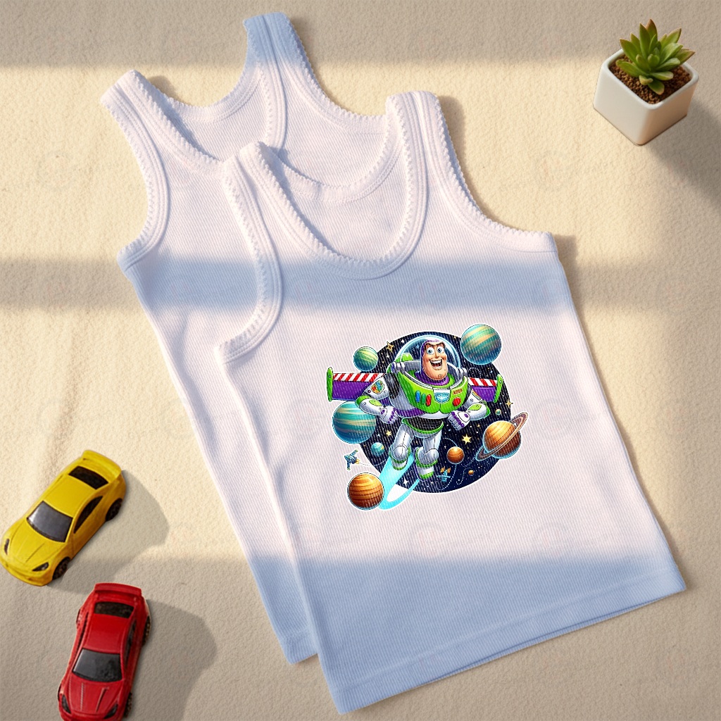 6 Pcs Kaos Dalam Anak Laki-Laki Putih Motif karakter / Singlet Anak Katun Motif Sablon Printing