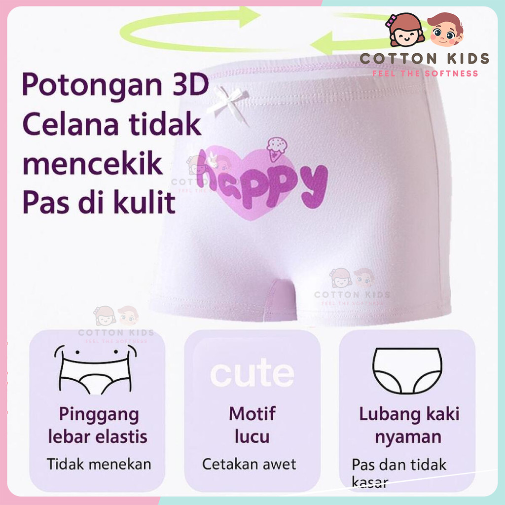 Cotton Kids Celana Dalam Anak Perempuan Kartun Lucu |Celana Dalam Boxer 4pcs Ukuran 2-10 tahun Motif Lucu