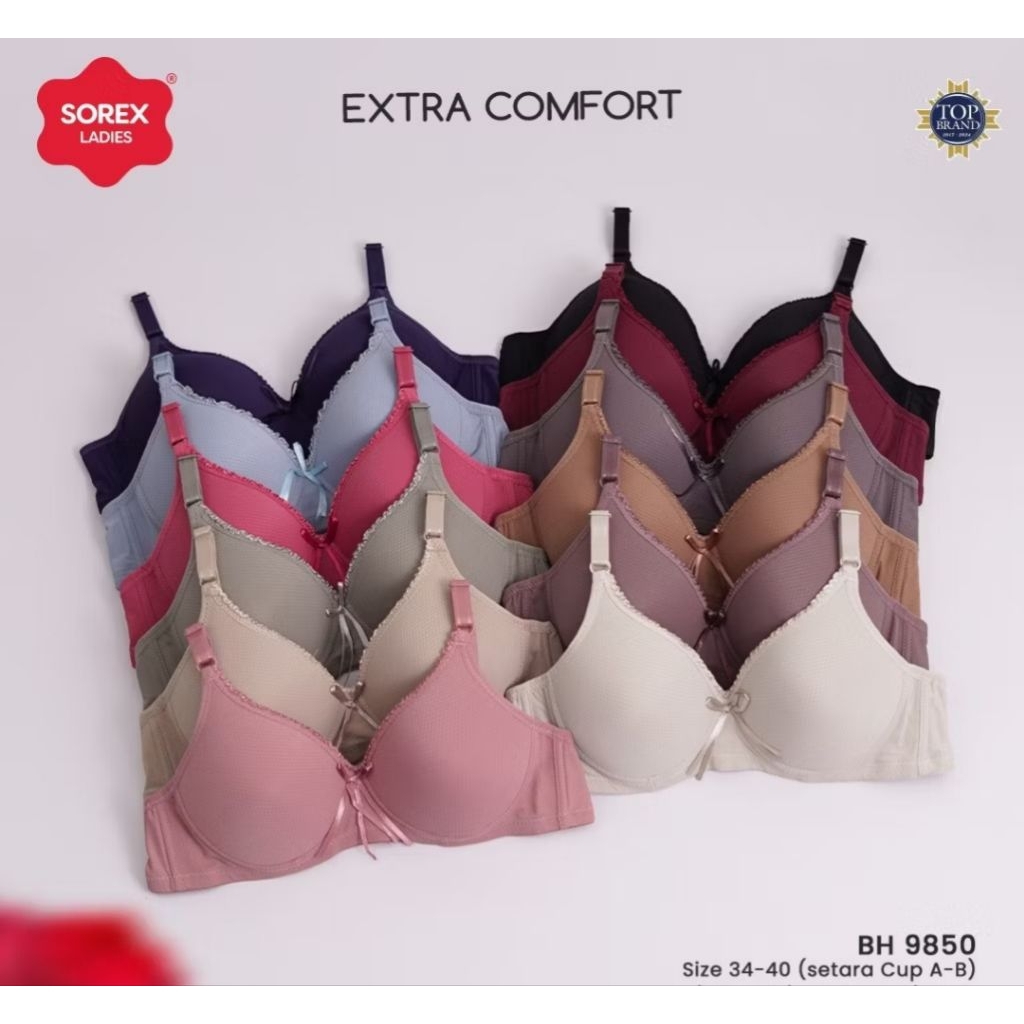 SOREX 9850 Bra BH Berpori Tanpa Kawat Busa Tipis Extra Comfort Kait 2 Cup A - B sz 34 - 40