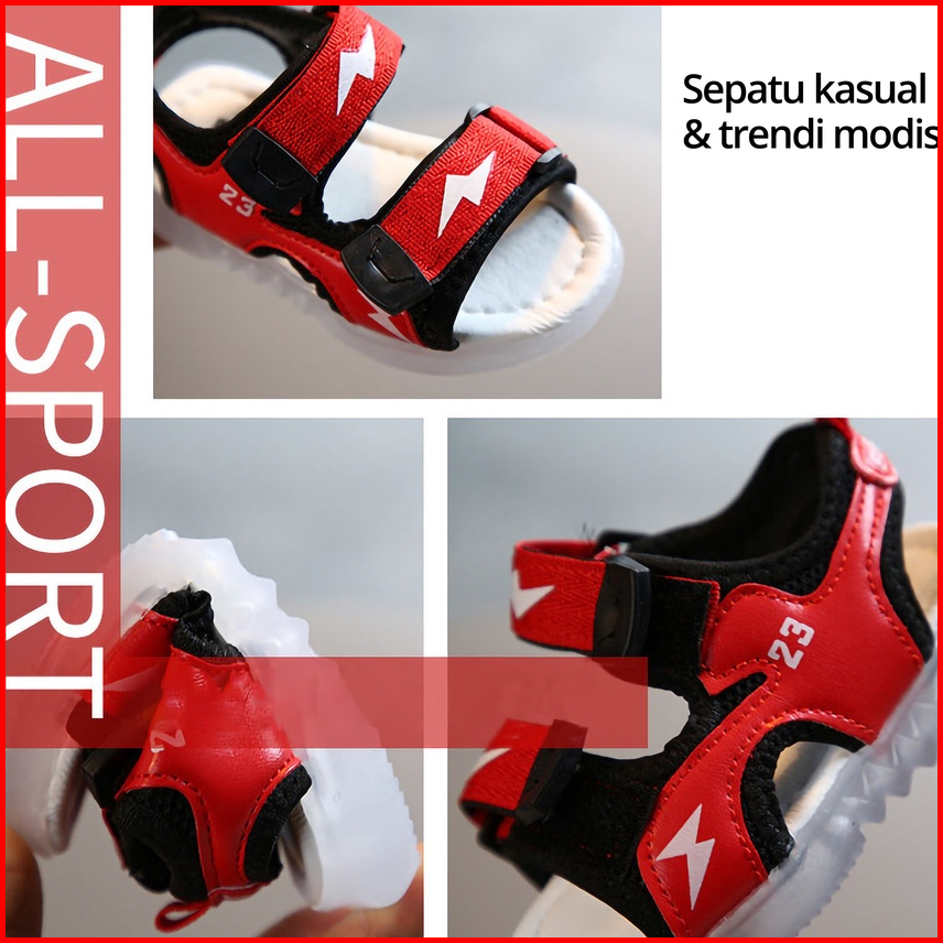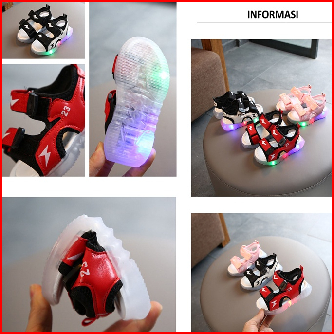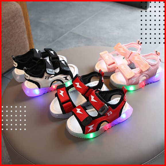 Mosbo Sepatu Led Anak Laki Laki Sepatu Lampu Anak Laki Laki Led Sepatu Sandal Led Motif Lighting Thunder Baru Mbk42