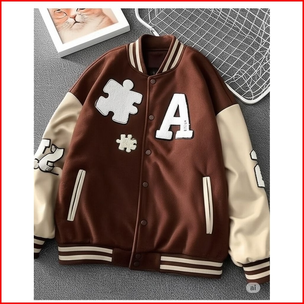 Jaket Baseball Varsity Puzzle Fleece Korean Style