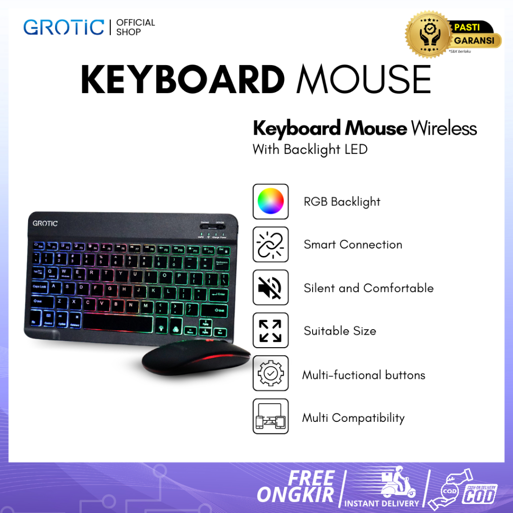 GROTIC Keyboard Mouse Wireless Bluetooth LED Backlight 10 inch Untuk Laptop & Tablet