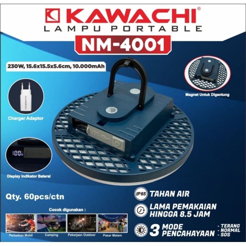 LAMPU EMERGENCY PORTABLE KAWACHI NM-4001 230W BATERAI 10.000MAH - DIGITAL DISPLAY - TAHAN LAMA - MODE POWERBANK
