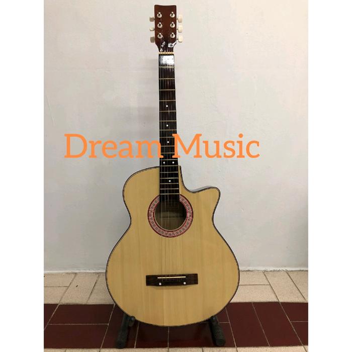 [DISKON TERMURAH] GITAR AKUSTIK PEMULA MURAH BONUS TAS, SENAR CADANGAN DAN PICK - NATURAL, GITAR + PICK