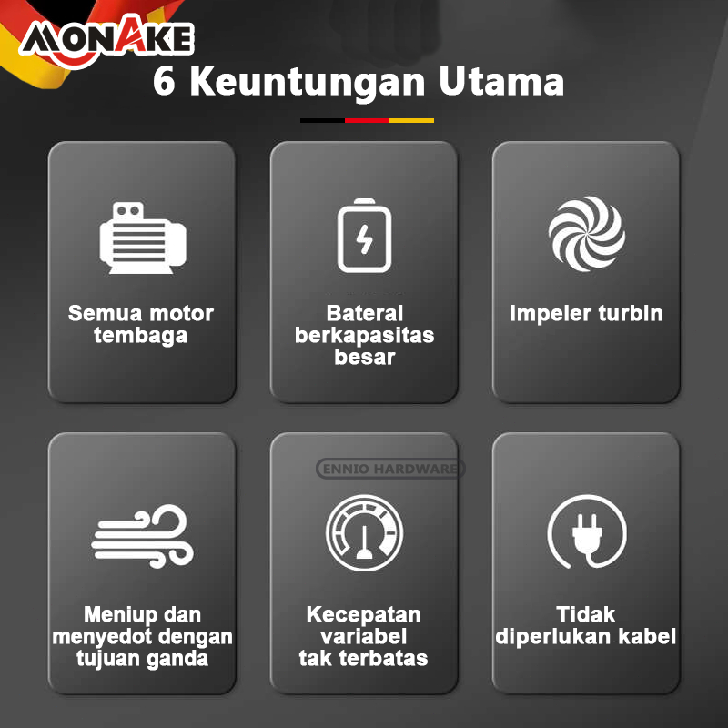 MONAKE Alat Jerman Mesin Blower Tangan Baterai Cordless Cleaner Wireless Blower 24V Dust Leaf Collector Blowing Sweeper