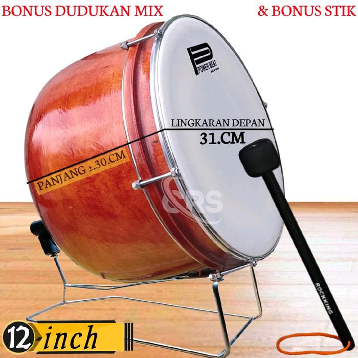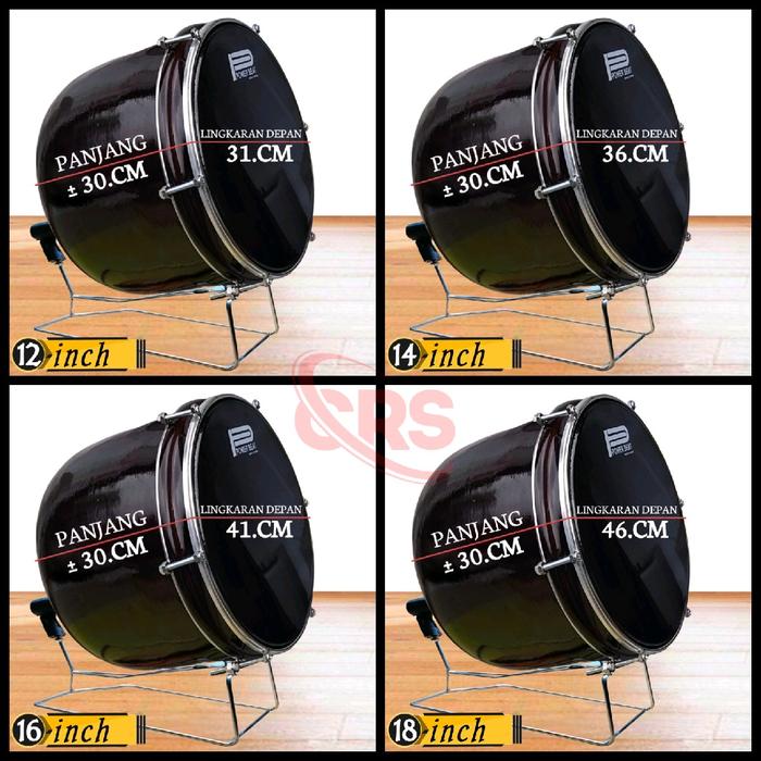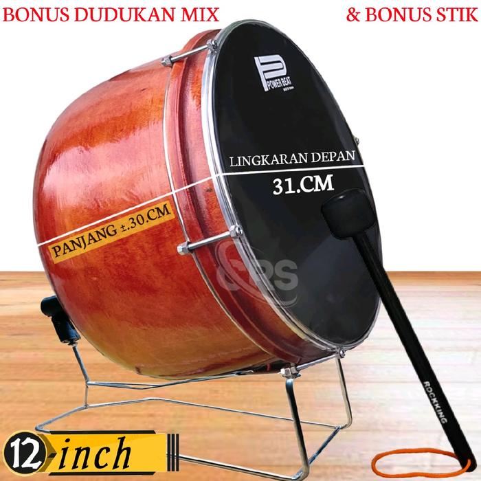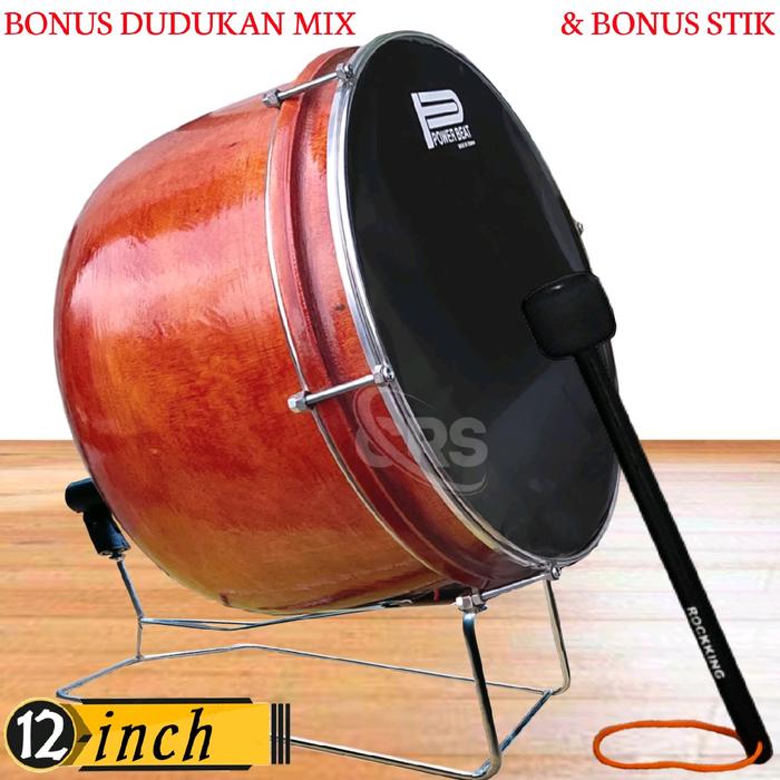 BAS HADROH MINI WARNA KAYU UKURAN 12 INCH LINGKARAN MIKA 31.CM MIKA HITAM ATAU PUTIH - HITAM