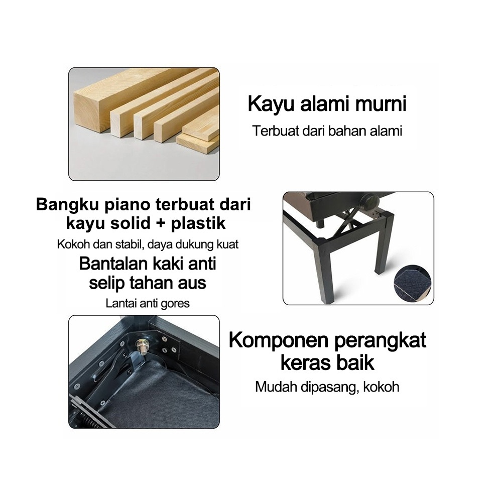 Benston Music- Bangku piano elektrik, bangku piano kayu dua orang dengan rak buku, bangku piano kayu elektrik, bangku gu