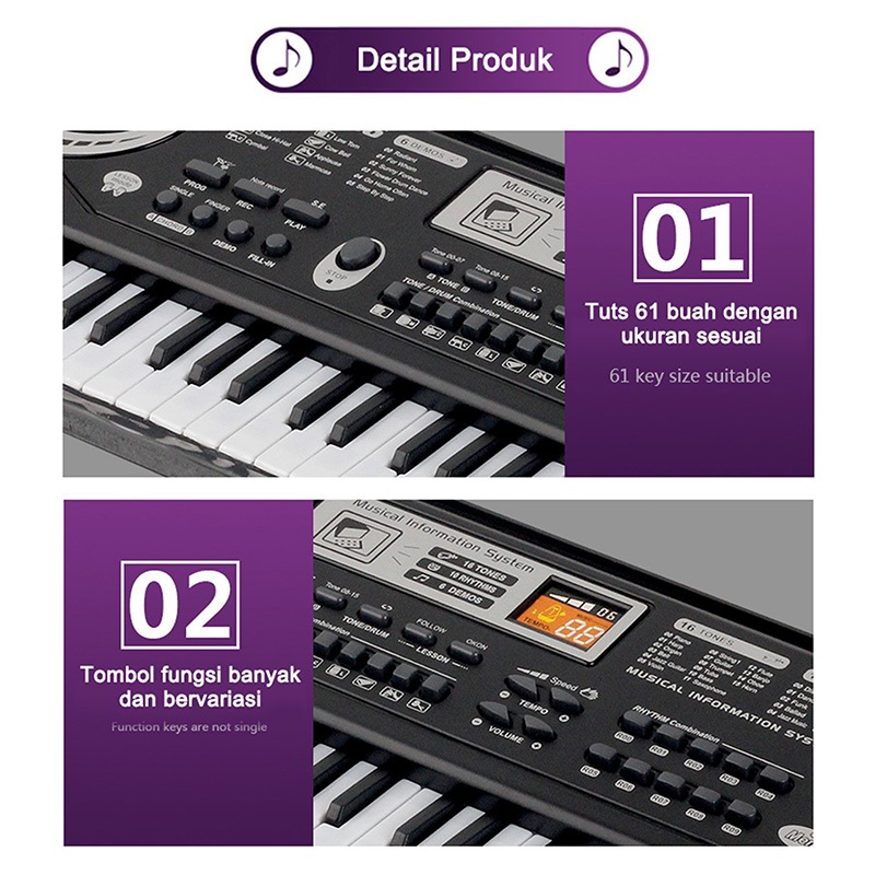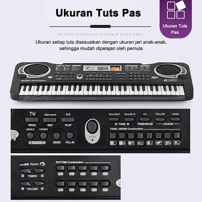 Benston Music- Piano Elektronik Untuk Anak-anak, Piano Elektronik Untuk Pemula, Piano Elektronik 61 Tombol, Piano Elektr