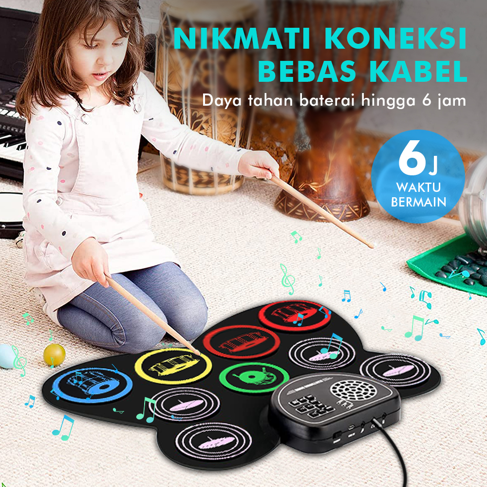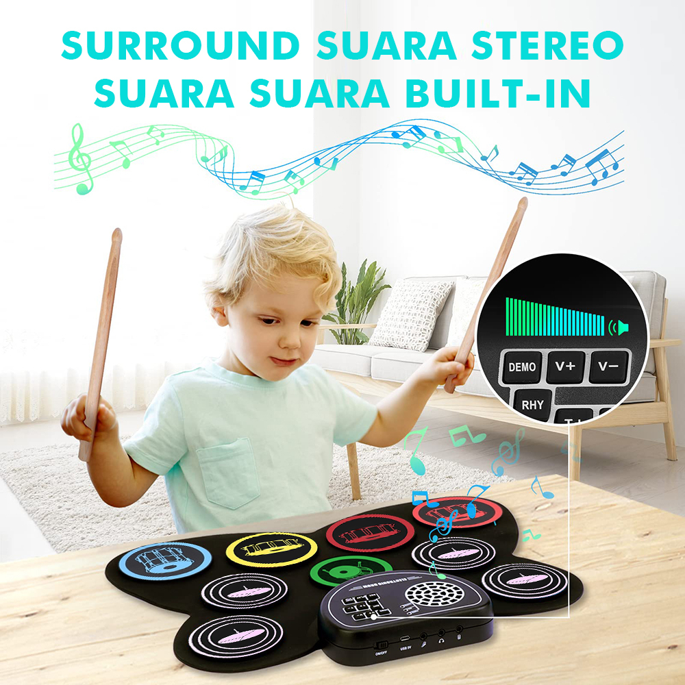 Rixton 9 Pads Electronic Drum Set Roll-Up Silicone Digital Drum Built-in Speaker Tabletop Practice