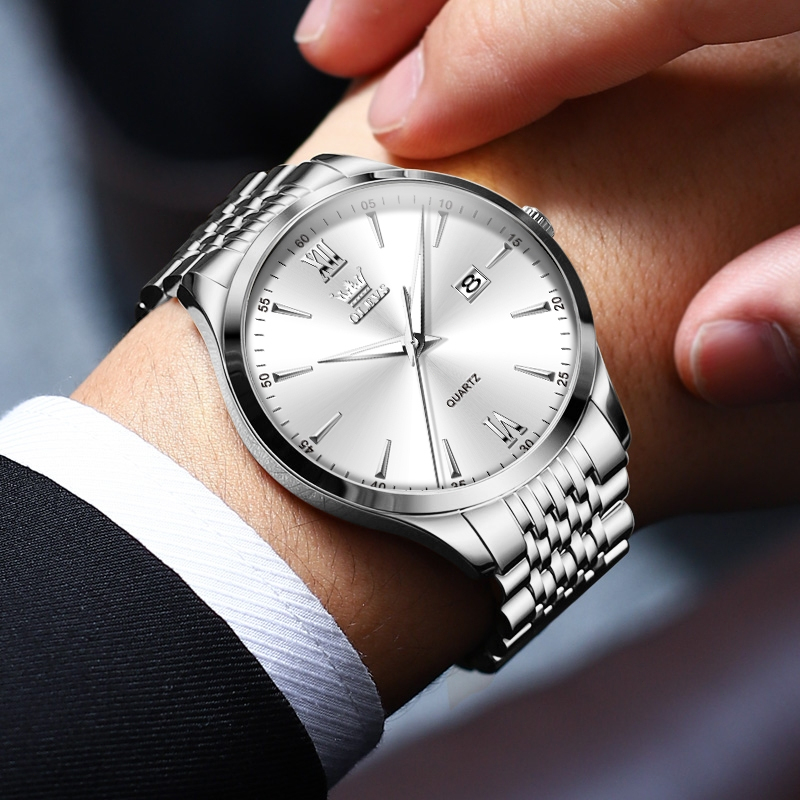 Olevs Jam Tangan Pria Original Anti Air Cowok Kalender Arloji Jam Tangan Pria Rantai Stainless Steel Luminous Analog Bis