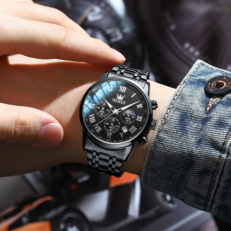 Olevs Jam Tangan Pria Original Anti Air Tahan Sport Stainless Steel Fashion Analog Watch Men